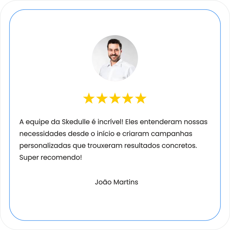 Na Skedulle, ajudamos você a encontrar o plano de marketing ideal para o seu negócio com base nos seus objetivos, público-alvo e setor. Nossa equipe de especialistas desenvolve estratégias personalizadas para aumentar a presença da sua marca e gerar resultados reais.